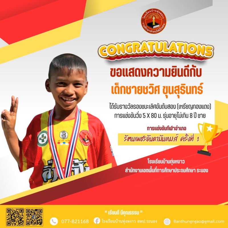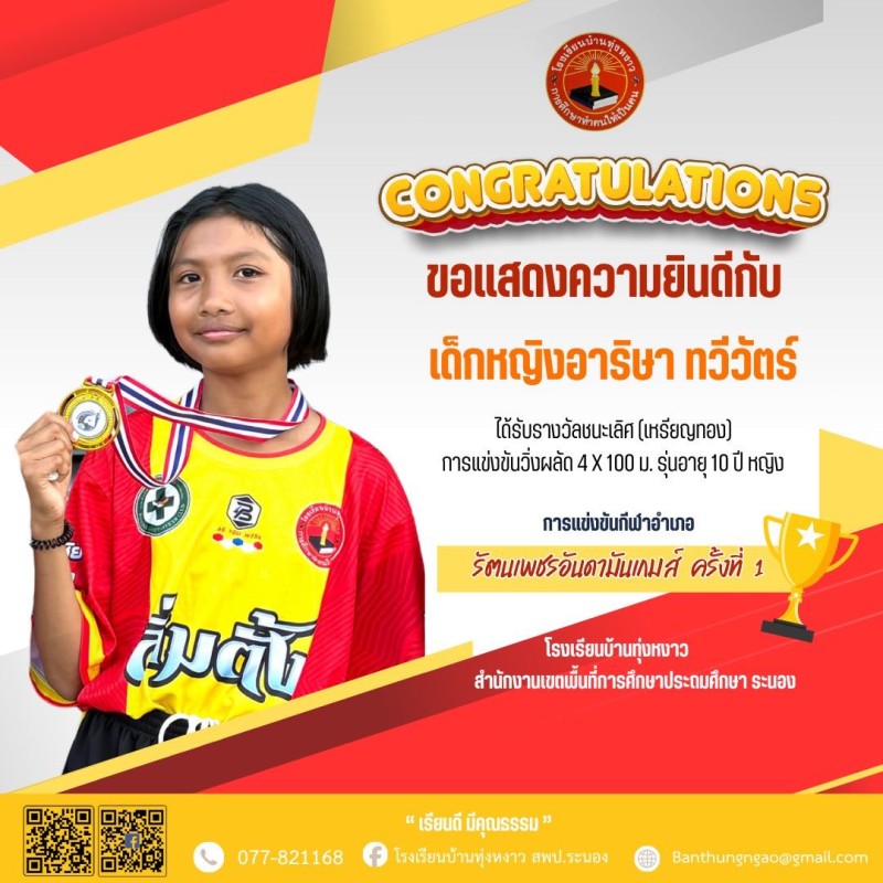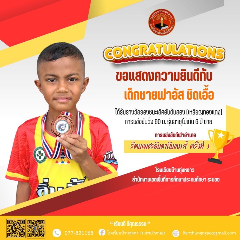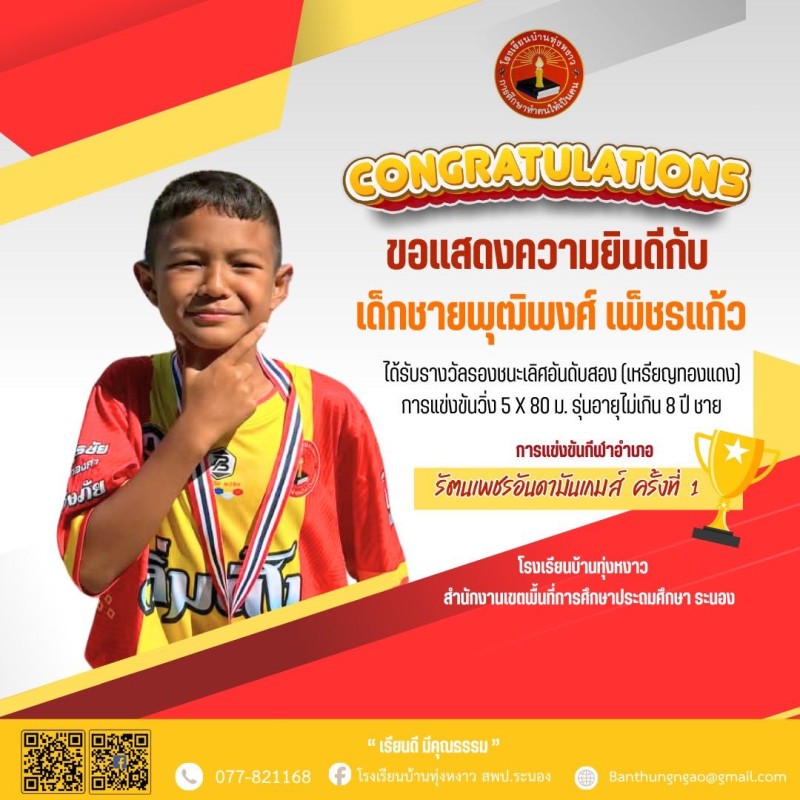 "Congratulations" นักกีฬา รัตนเพชรอันดามันเกมส์ ครั้งที่ 1
