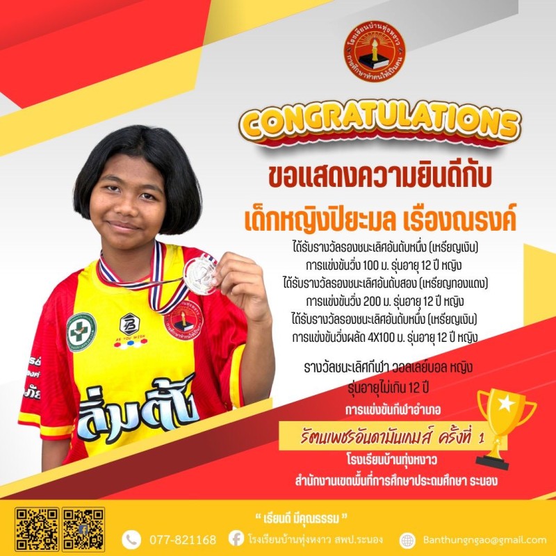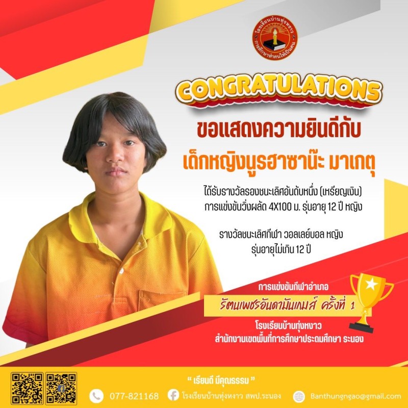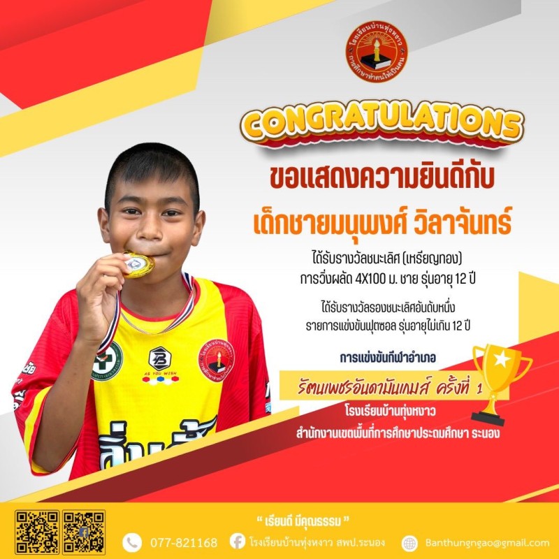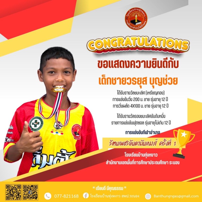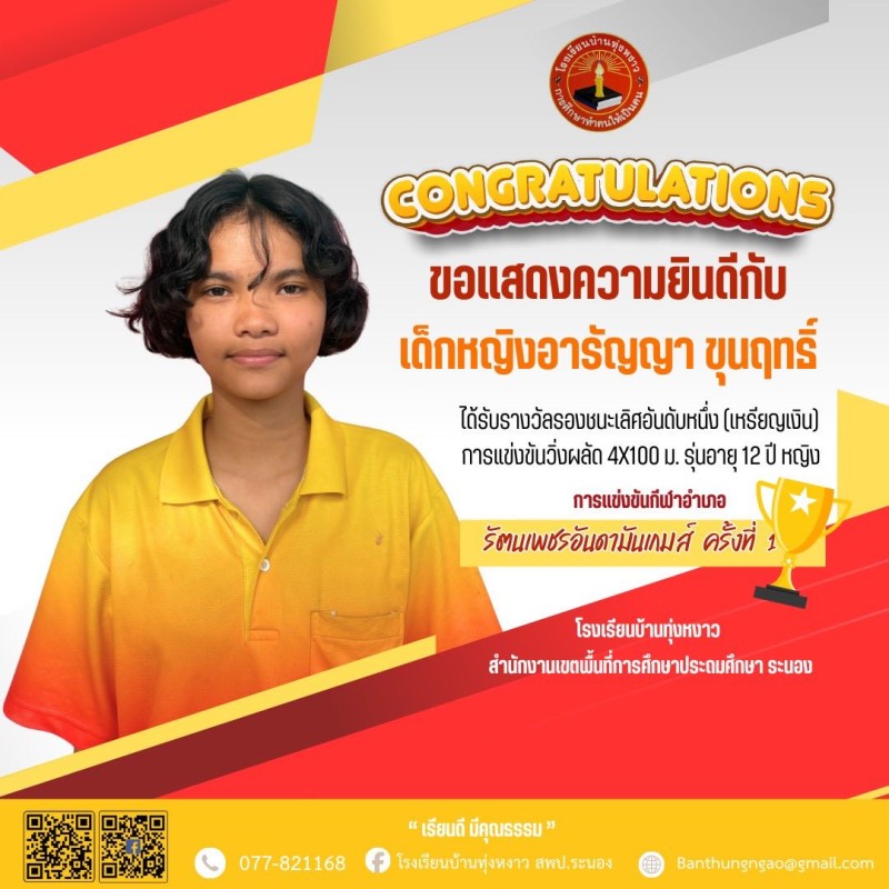 "Congratulations" นักกีฬา รัตนเพชรอันดามันเกมส์ ครั้งที่ 1
