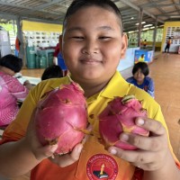 ผู้ปกครองมอบแก้วมังกรให้แก่นักเรียน