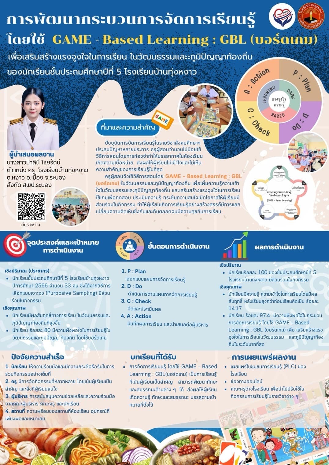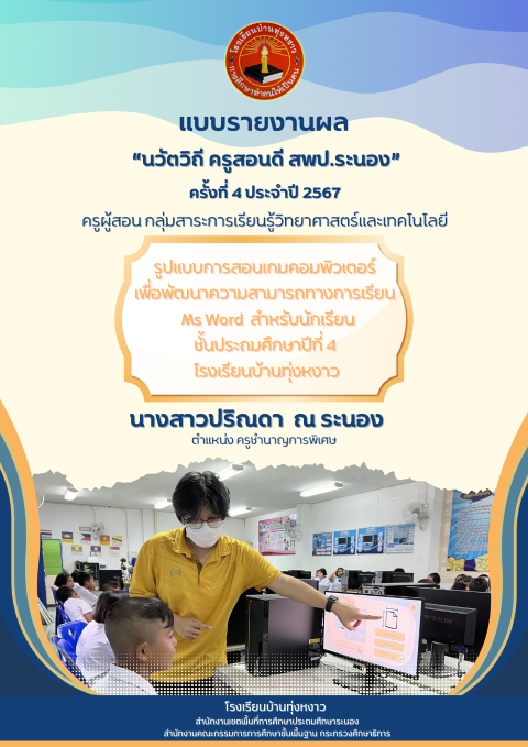 การพัฒนาการอ่านภาษาอังกฤษเพื่อความเข้าใจ โดยใช้กระบวนการเรียนรู้ DR-TA(Directed Reading - Thinking Activity) ร่วมกับเทคนิคการสอน 5W1H เพื่อยกระดับผลสัมฤทธิ์ทางการเรียนรู้ ของนักเรียนชั้นประถมศึกษาปีที่ 6 โรงเรียนบ้านทุ่งหงาว |