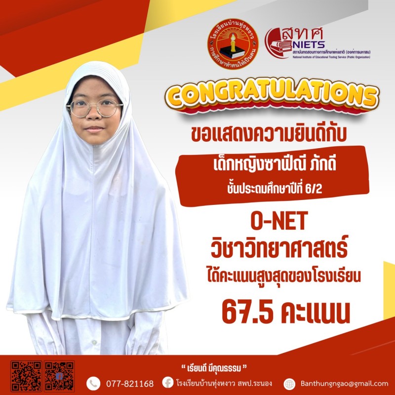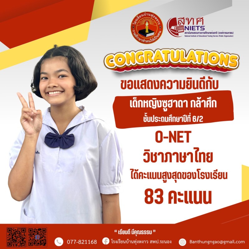 แสดงความยินดีนักเรียนชั้น ป.6 คะแนนสอบสูงสุดในแต่ละวิชา