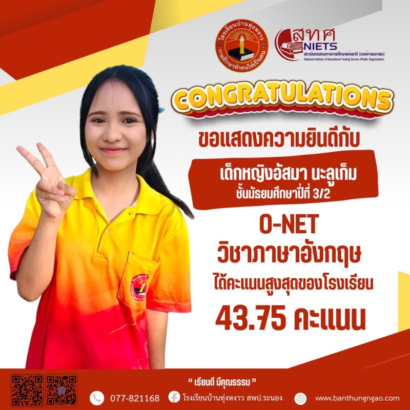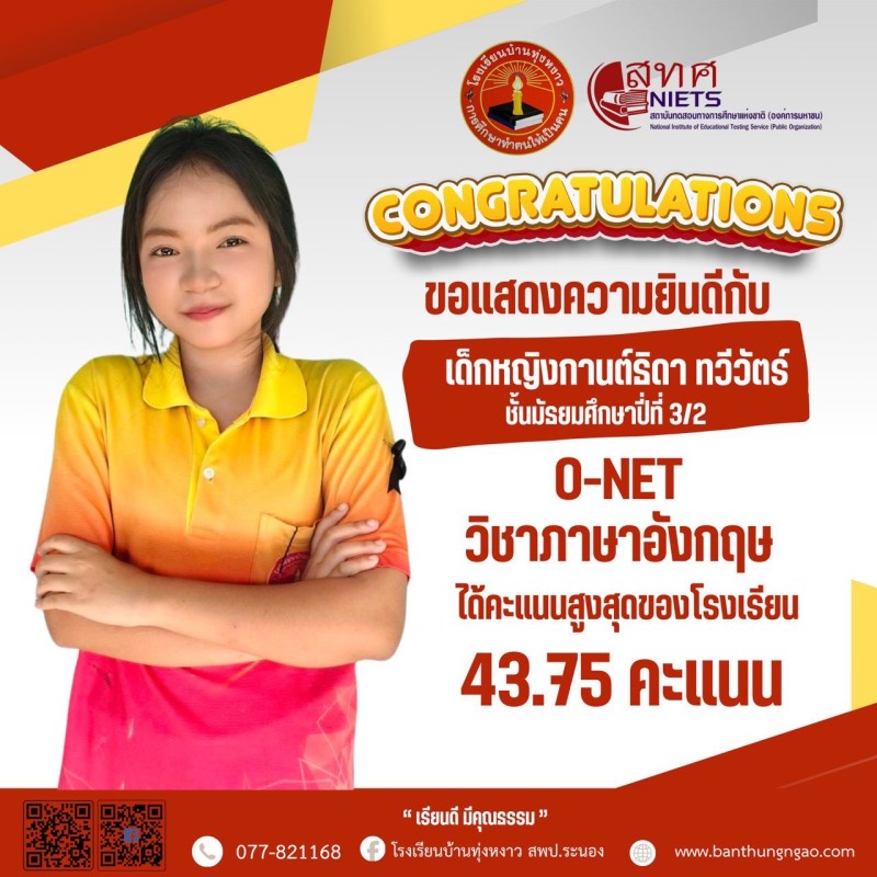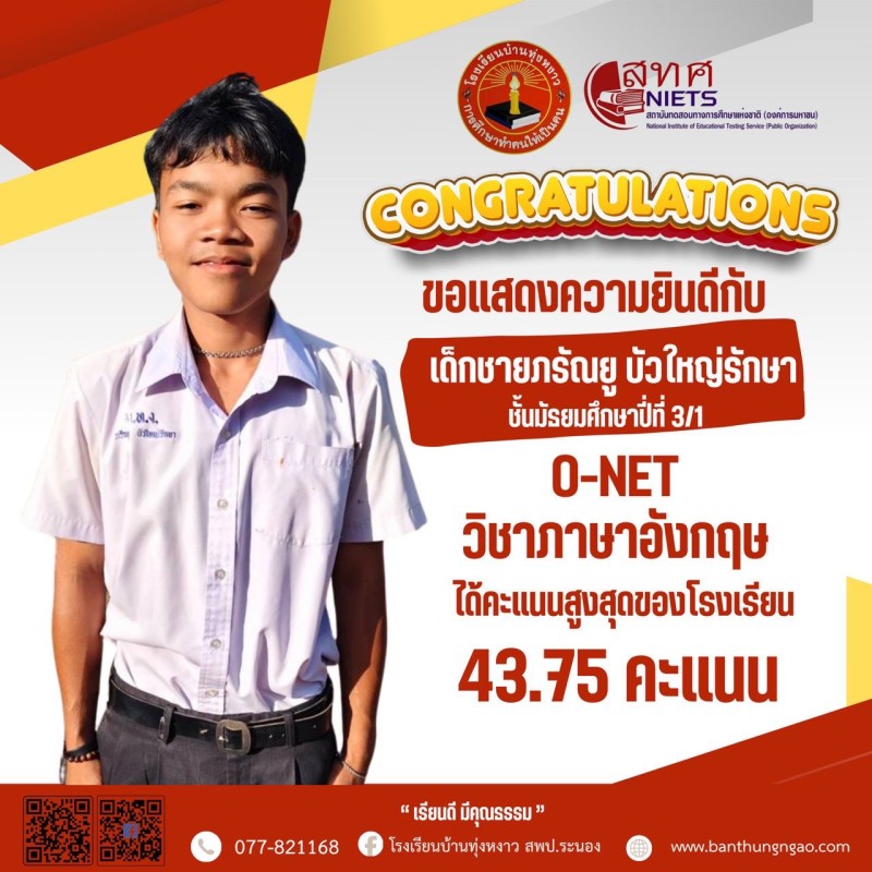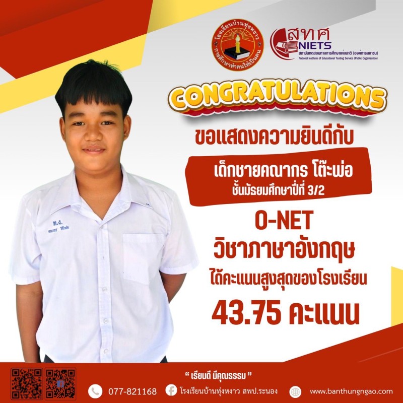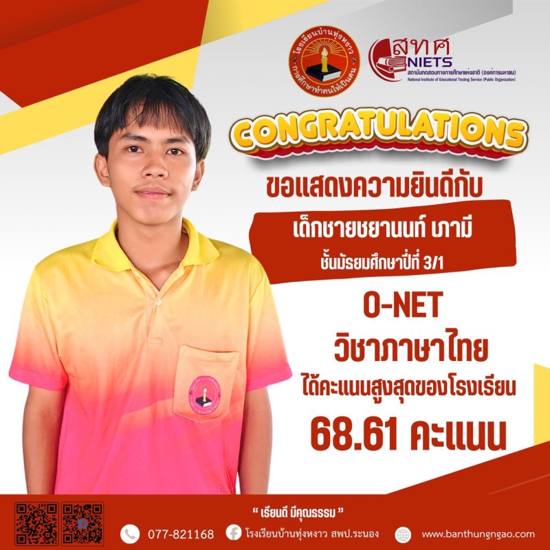 แสดงความยินดีนักเรียนชั้น ม.3 คะแนนสอบสูงสุดในแต่ละวิชา